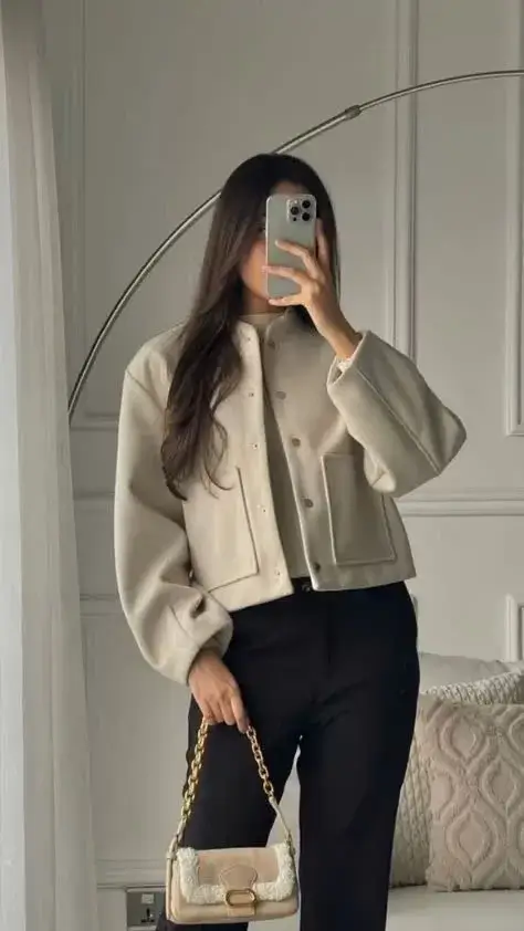 ب) کت دکمه‌دار کوتاه (Cropped Jacket)