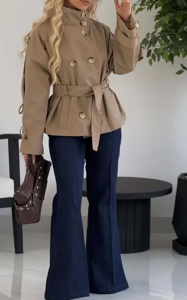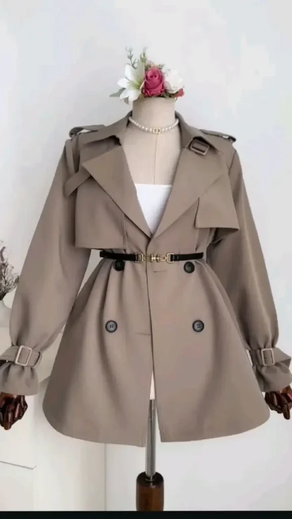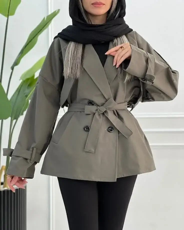 کت بیرونی ترنچ کت دارای کمربند بهار و پاییز تعریف فرم بدن